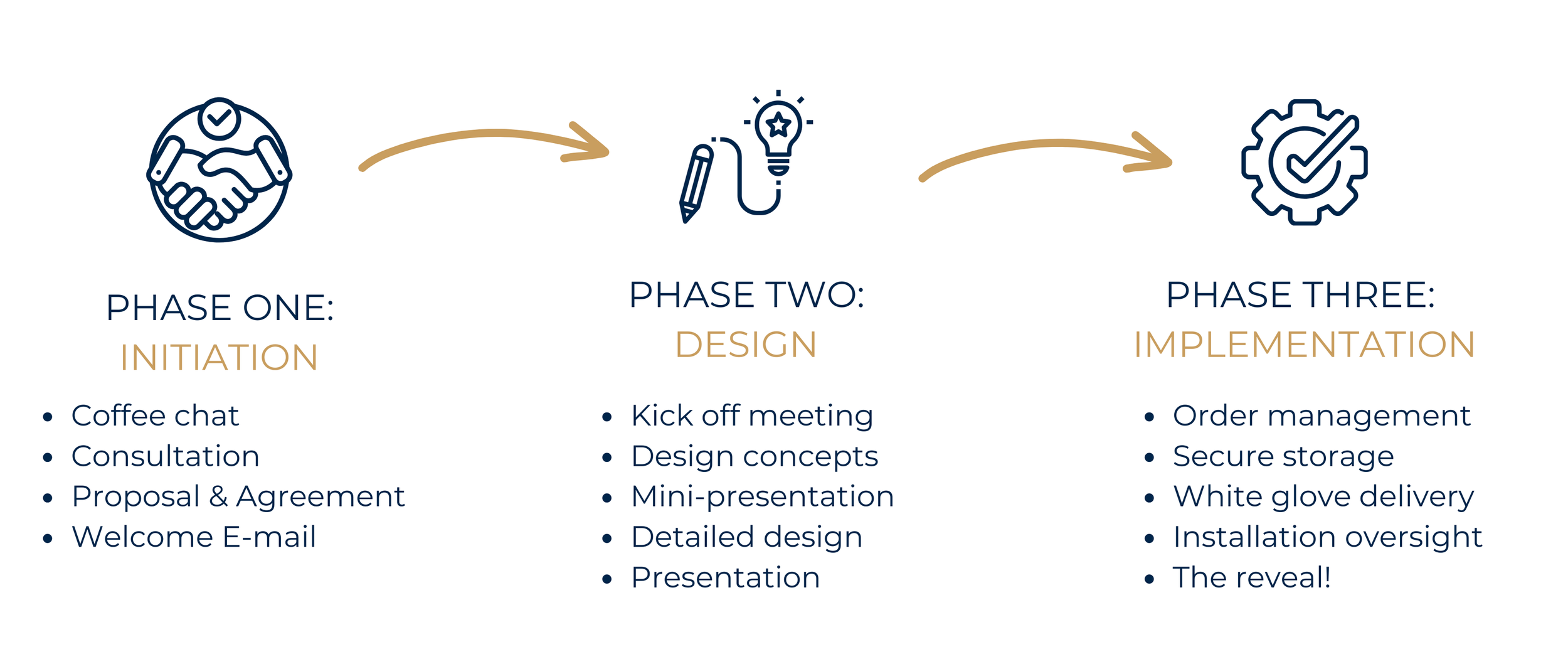 At Kellie Haslam Designs, the goal is to optimize the design process, ensuring it is both effective and efficient, while minimizing stress and, yes, even adding an element of enjoyment. I firmly believe that a well-defined and streamlined process is the key to delivering an exceptional client experience. The design journey unfolds through three distinct phases.